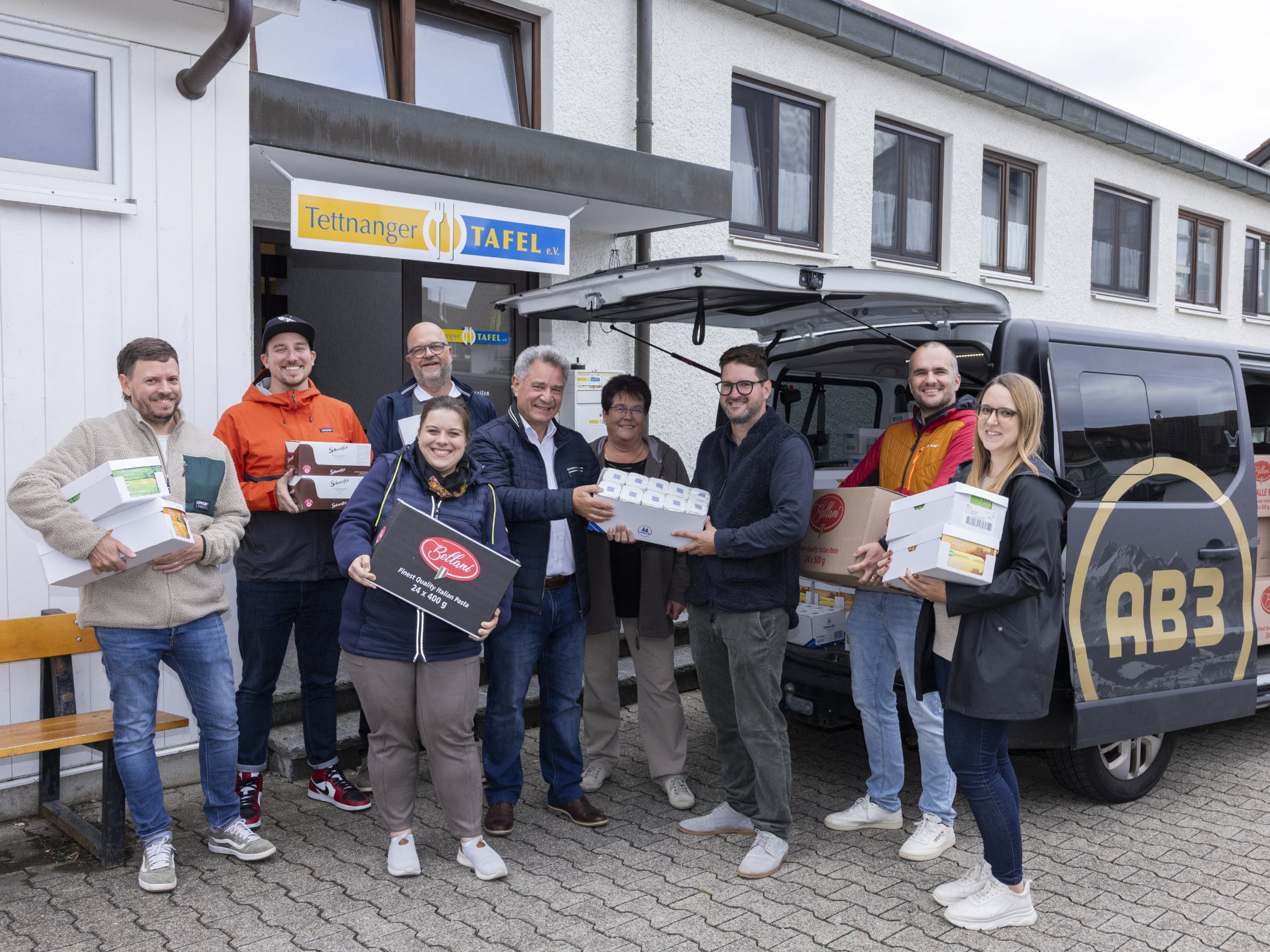 Anfang Oktober fand die Übergabe statt: Die AB3-Crew machte sich mit zwei voll beladenen Kleintransportern mit Lebensmitteln auf den Weg zur Tettnanger Tafel. Die Freude bei den Verantwortlichen war groß und auch für uns war es eine Ehre, die wertvolle Arbeit der Tafel unterstützen zu können.