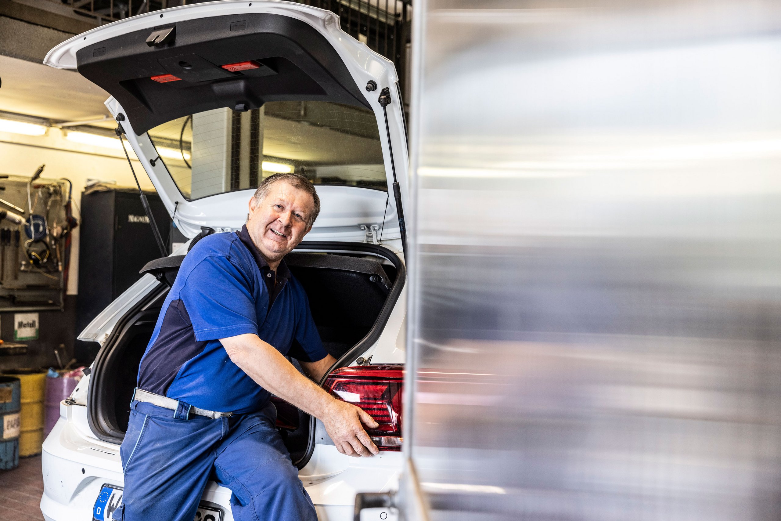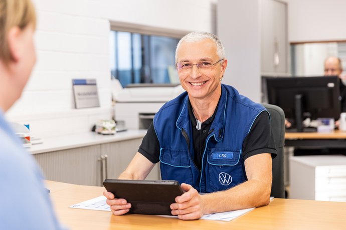 Blau wird mit Vertrauen, Zuverlässigkeit und Stabilität in Verbindung gebracht – und in diesem Kontext auch mit den Markenfarben der Dachmarke Volkswagen. Darüber hinaus vermittelt Blau die Professionalität, Seriosität und Kompetenz des Unternehmens.