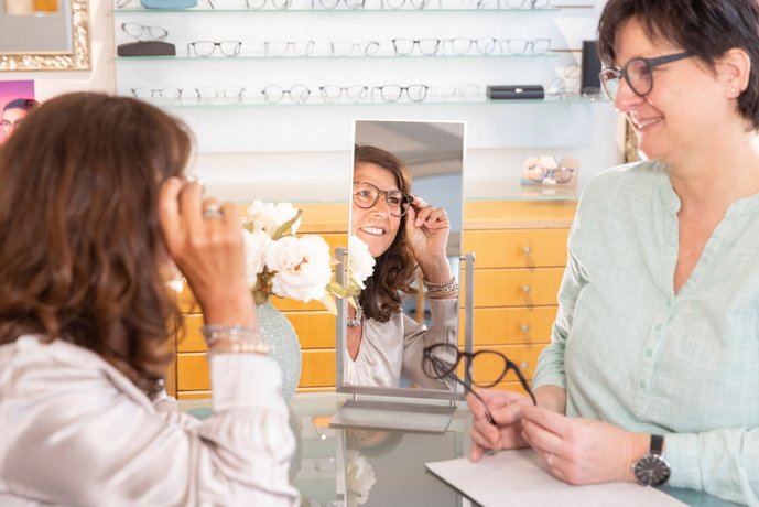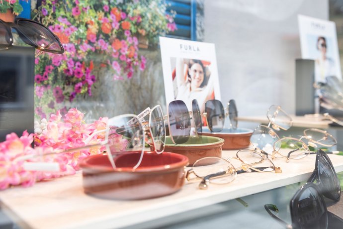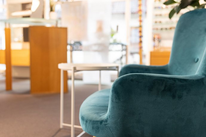 Der Optiker hatte den Wunsch nach einem Design, das sowohl zum frisch renovierten Ladengeschäft passt als auch die Identität des Unternehmens widerspiegelt. Aus diesem Grund wurden Farben und Formen aufgegriffen, die beispielsweise der neuen Mustertapete entsprachen. Die Verwendung von Weiß, Petrol und Hellblau ermöglichte es, das Look & Feel des Ladens widerzuspiegeln und gleichzeitig einen Hauch von maritimem Flair zu verleihen.